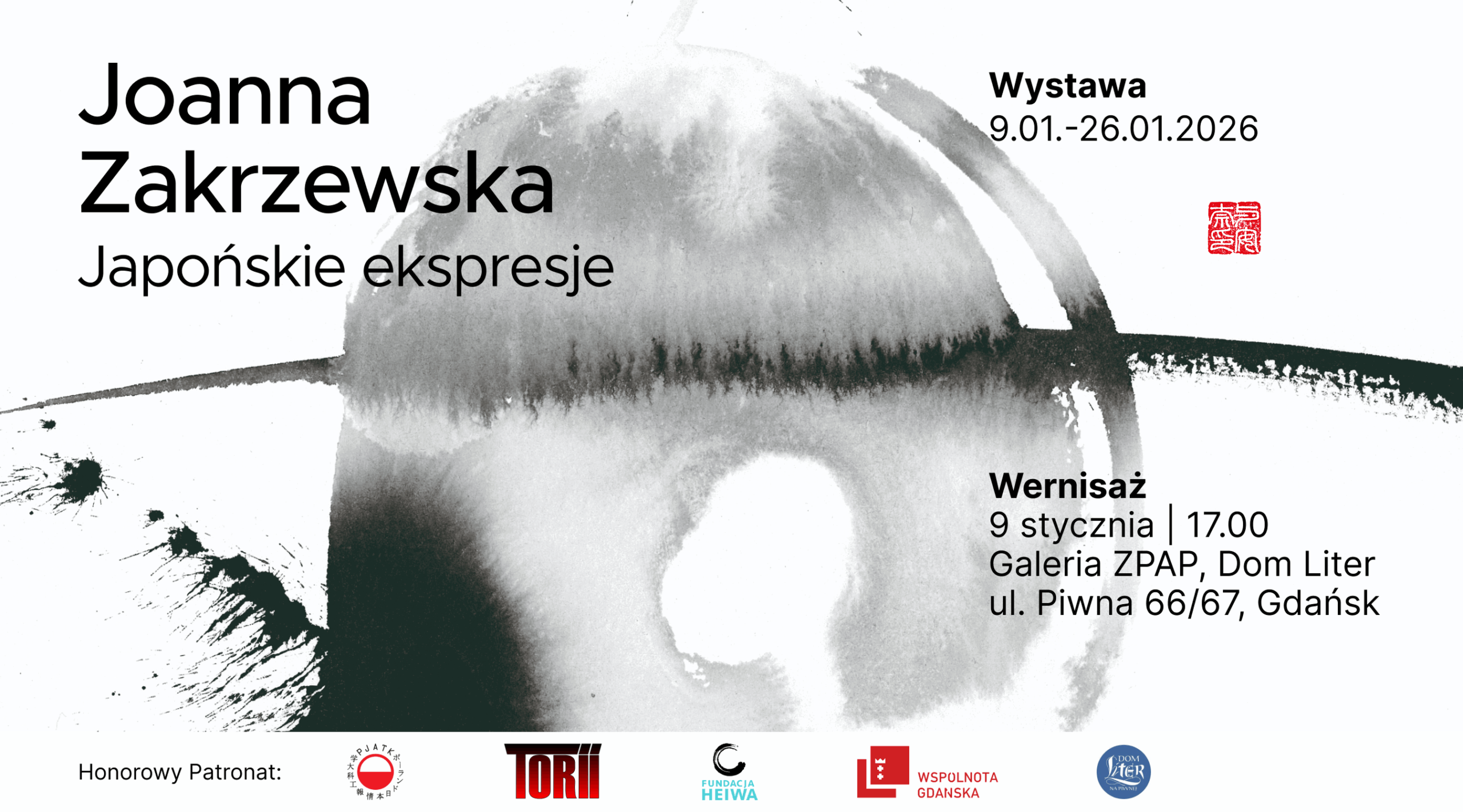 Wernisaż odbędzie się 9.01.2026 w Galerii ZPAP Dom Liter w Gdańsku, ul. Piwna 66/67 o godzinie 17.00. Zapraszamy.